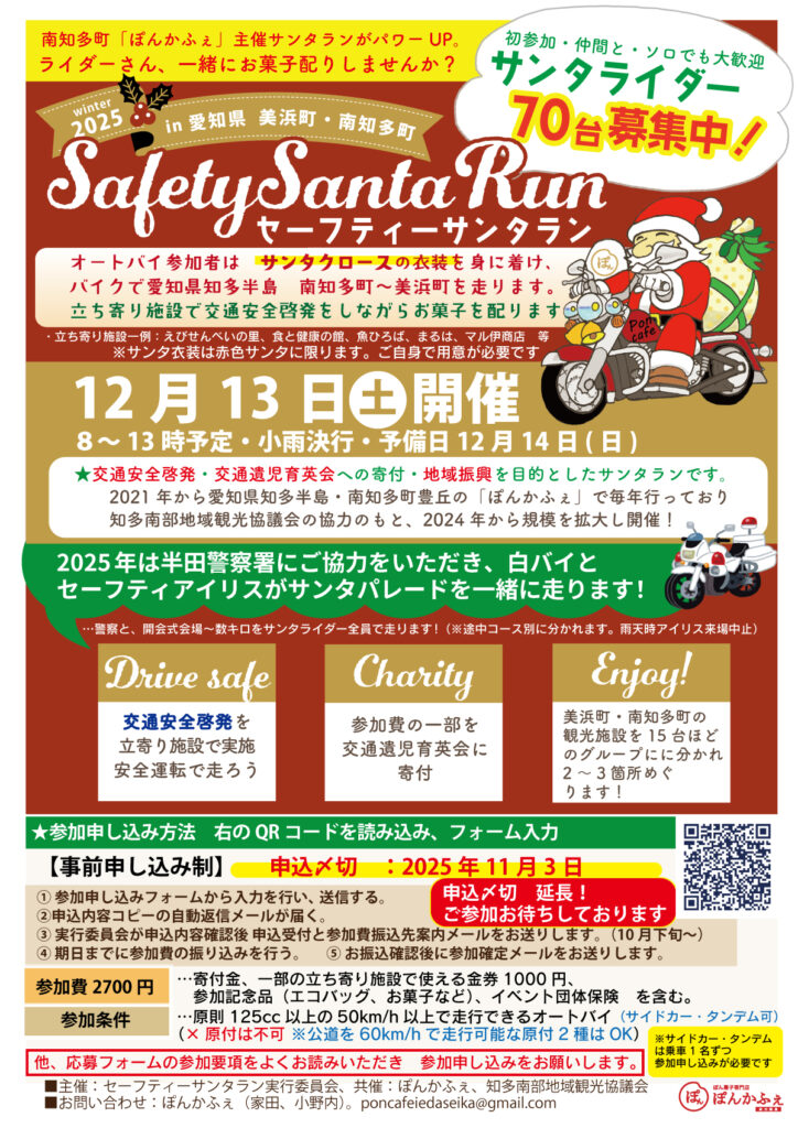 サンタライダー募集11/3まで<セーフティーサンタランin美浜・南知多を12/13に開催します>