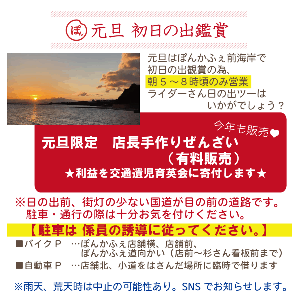直売所ぽんかふぇ年末年始営業日のお知らせです♪