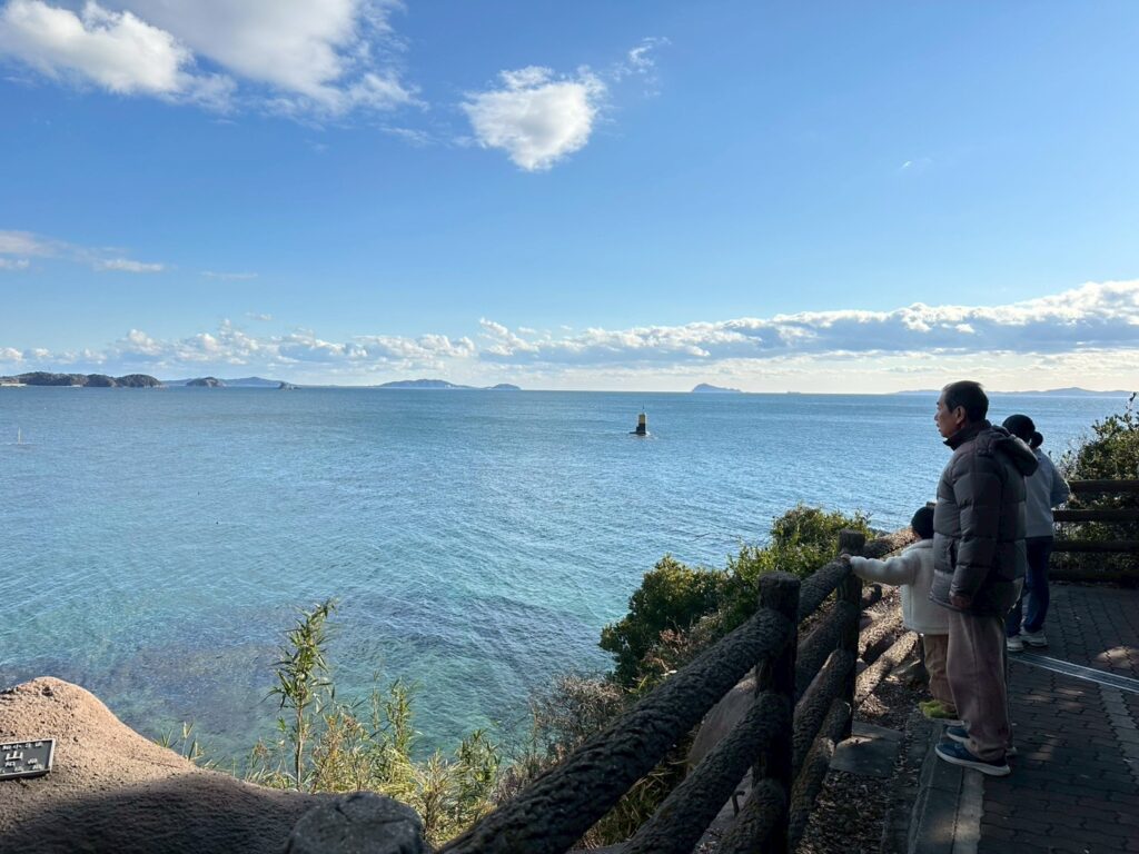 羽豆岬から伊勢湾を臨む。元会長と孫