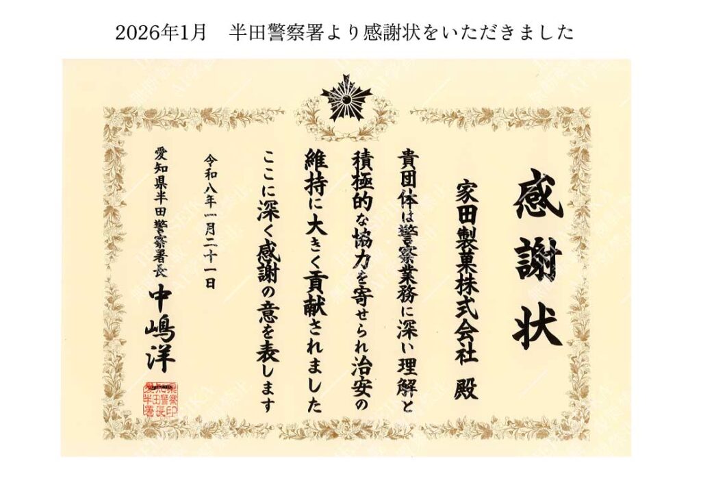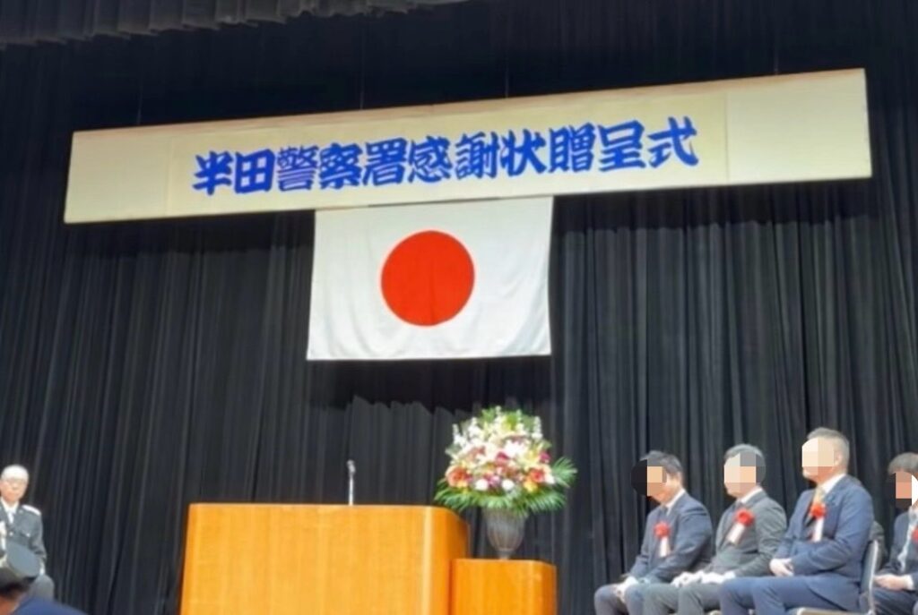 【お知らせ】半田警察署より感謝状を贈呈されました