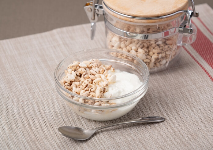 朝食や料理・デザートのトッピングとしてのパフ製品です。市販のシリアルに混ぜる、サラダ・スープのトッピング、チョコやクッキーに混ぜ込んでおかしづくりなど、アイデア次第でいろんな使い方ができます。もちろんそのままでも美味しくいただけます。